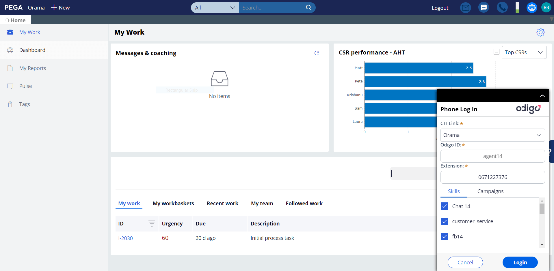 Agent logging to Odigo from Pega