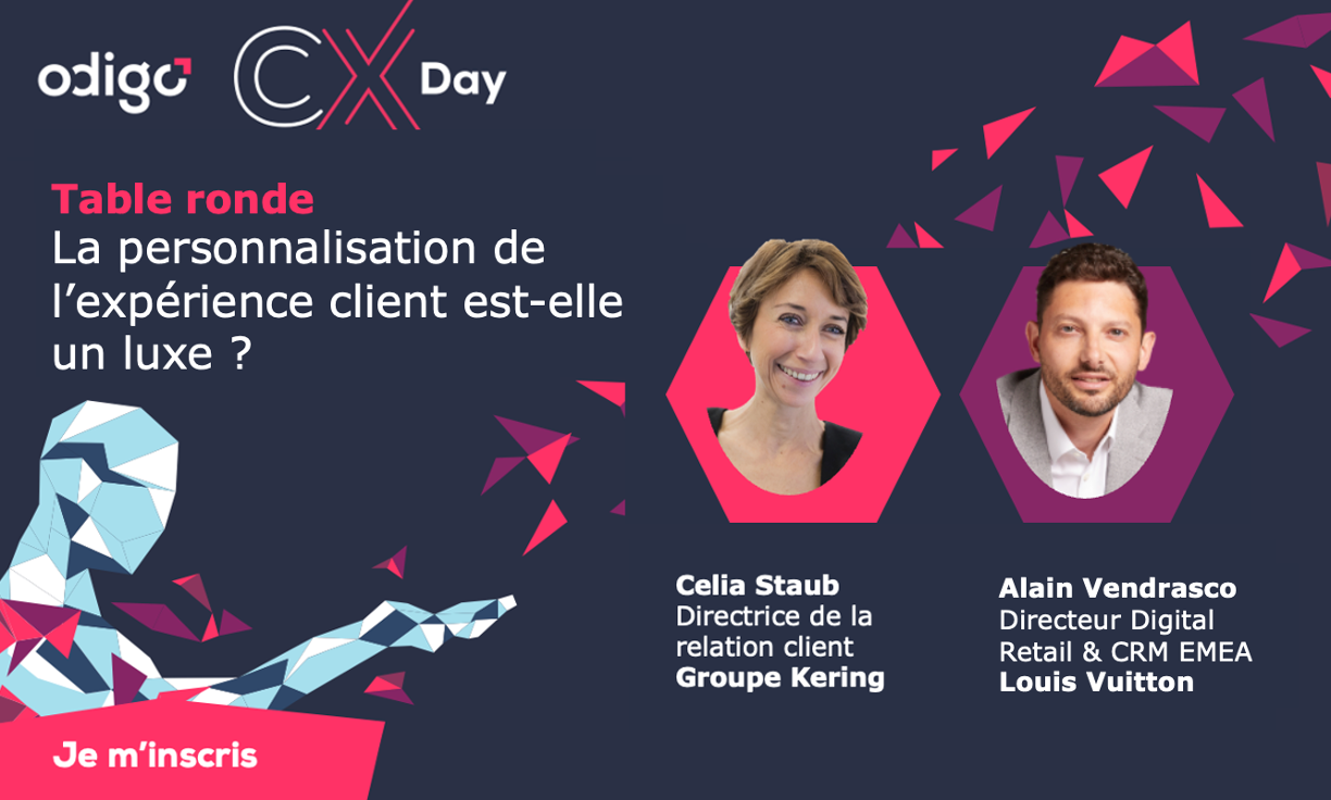 Intervenants : Celia Staub, Directrice de la relation client, Groupe Kering & Alain Vendrasco, Directeur Digital Retail & CRM, Louis Vuitton. Animée par Marie Verchere, Head of CX consulting, Odigo
