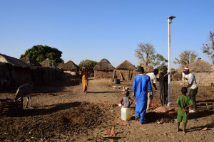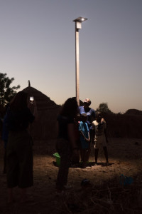 Mise en place d’un lampadaire par les villageois.