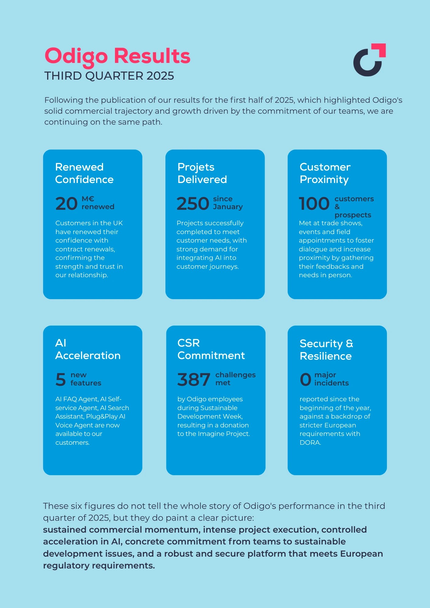 Following the publication of our results for the first half of 2025, which highlighted Odigo’s solid commercial trajectory and growth driven by the commitment of our teams, we are continuing on the same path.