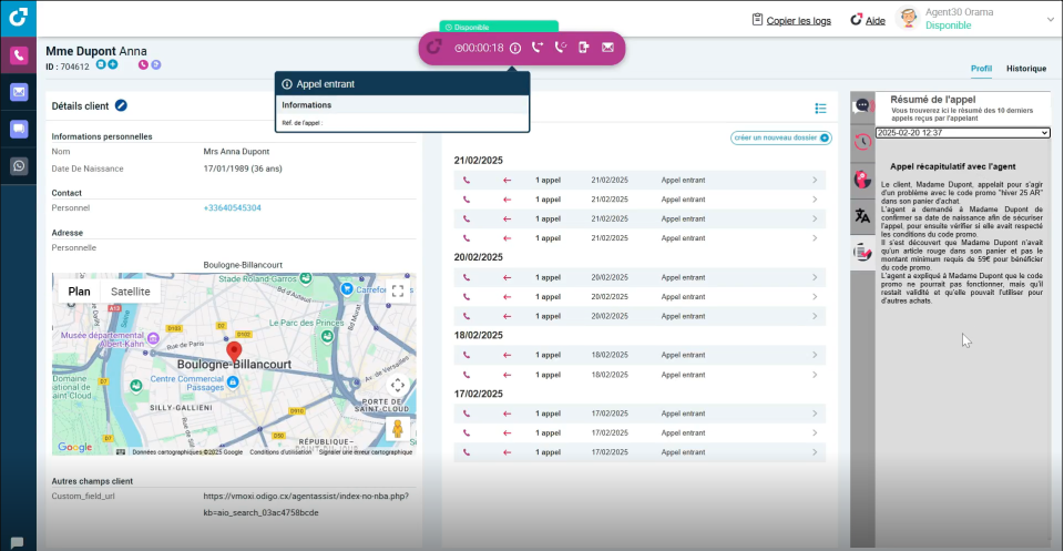 Le résumé est accessible pour le conseiller à la fin de l’appel. Il est également disponible pour consolidation dans les applications d’entreprise.